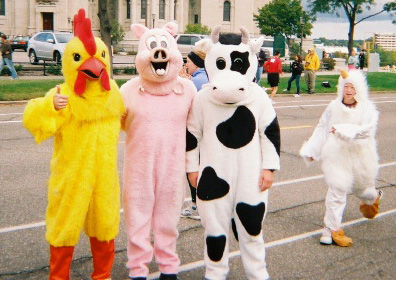 If you ran the Twin Cities Marathon October 2009 and saw this you weren't hallucinating. These folks were cheering on the runners across from St. Paul's Cathedral a half mile from the finish. | |||||||||||||||
