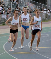 Elite 5km race on the UH-Manoa Track Friday February 5th 2010 l to r Cheryl Smith, Lisa Harvey, Chantelle Wilder. |